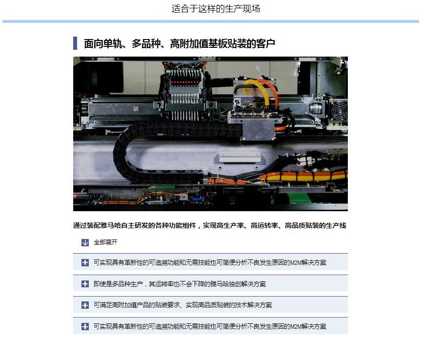 YRM20高效模塊貼片機(jī) 極 限改進(jìn)“單一貼裝頭解決方案”,具有卓絕生產(chǎn)率和通用性的萬 能型貼片機(jī)1.融合Σ系列產(chǎn)品的技術(shù),實(shí)現(xiàn)卓絕的生產(chǎn)率.2.采用“單一貼裝頭解決方案”,廣泛對(duì)應(yīng)各種生產(chǎn).3.標(biāo)準(zhǔn)配備可維持高品質(zhì)貼裝的各項(xiàng)功能.4.通過運(yùn)用豐富的功能群,實(shí)現(xiàn)高效生產(chǎn).