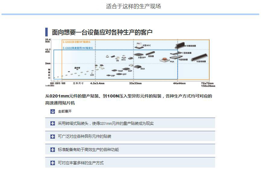 1.采用轉(zhuǎn)塔式貼裝頭,實現(xiàn)單一貼裝頭解決方案,使得高速性、通用性、高生產(chǎn)率得到進一步改進。