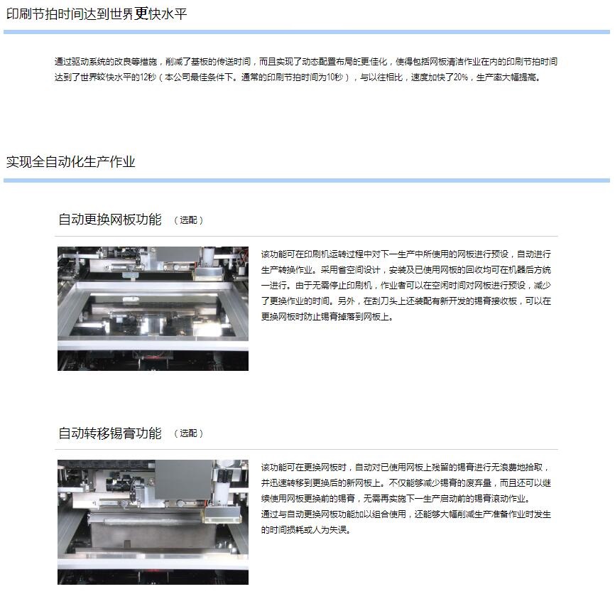 2.超高速印刷性能 包括網板清潔作業:12sec/cycle / 10sec/cycle