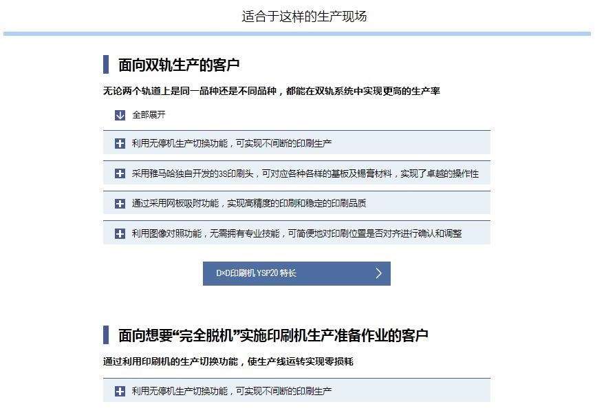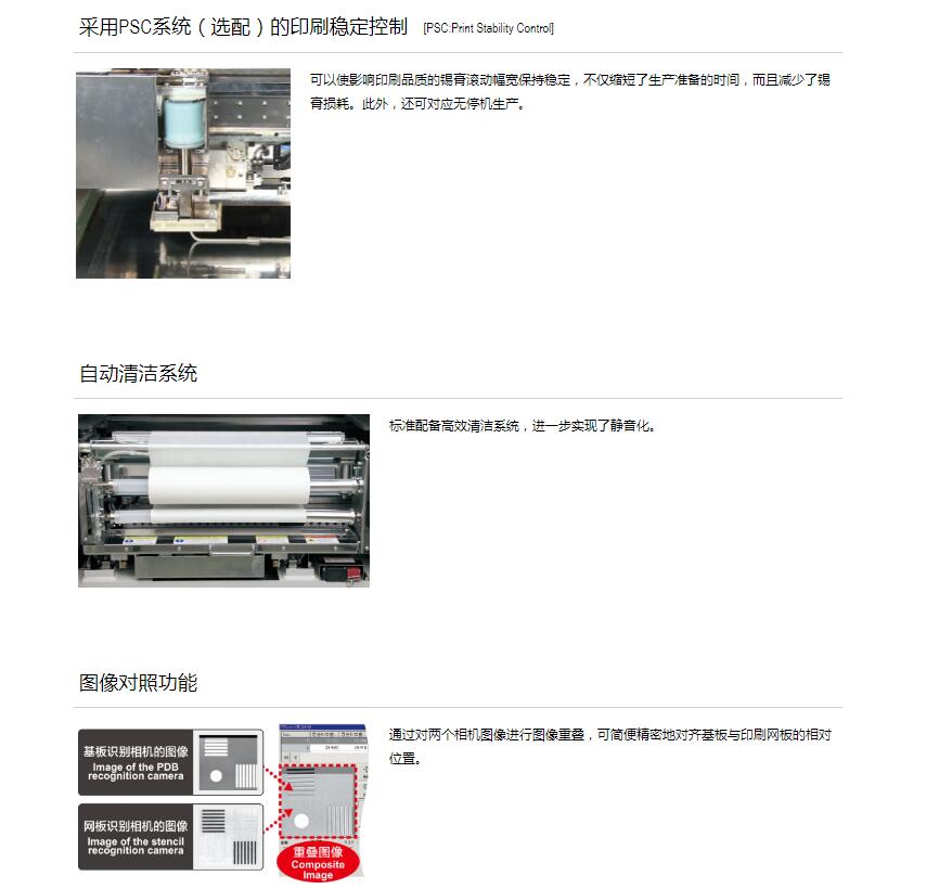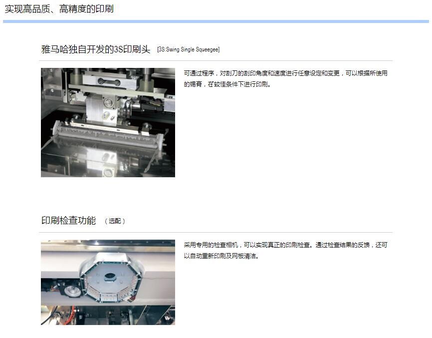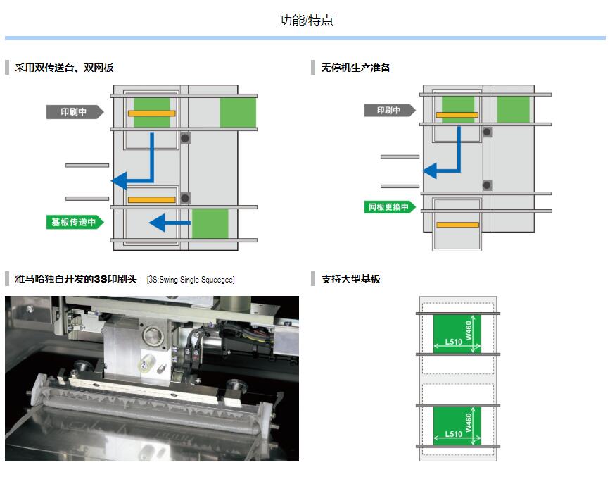 YSP20印刷機1.采用Dual stage、Dual mask。2.實現了超常“高速”、“多功能性”。3.超高速印刷性能5sec/cycle。4.重復對位精度3σ:±0.005mm。5.支持大型基板L510 x W460mm。6.前后網板尺寸更大可達750×750mm。